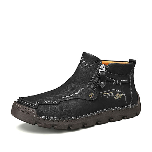 Men's Top-Quality Motorcycle Boots Hand-Stitched Genuine Leather Boots-Wide Toe, Waterproof, Anti-Slip, Anti-Sprain, Suitable for Work, Driving, Hiking